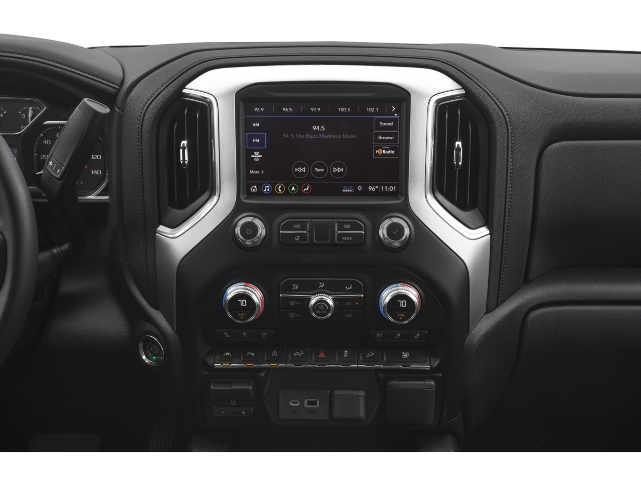 8-Speed Automatic, 4WD, Dark Walnut/Slate Leather, 10-Way Power Driver Seat Adjuster w/Lumbar, 10-Way Power Passenger Seat Adjuster w/Lumbar, 12-Volt Rear Auxiliary Power Outlet, 120-Volt Bed Mounted Power Outlet, 120-Volt Instrument Panel Power Outlet, 170 Amp Alternator, 2 USB Ports, 2 USB Ports (1st Row), 20 x 9 Polished Aluminum Wheels, 3.23 Rear Axle Ratio, 4-Wheel Disc Brakes, 6 Speakers, 6-Speaker Audio System Feature, ABS brakes, Air Conditioning, Alloy wheels, AM/FM radio: SiriusXM, Apple CarPlay/Android Auto, Auto-dimming door mirrors, Auto-dimming Rear-View mirror, Automatic temperature control, Auxiliary External Transmission Oil Cooler, Brake assist, Bumpers: chrome, Chrome Assist Steps, Chrome Grille, Color-Keyed Carpeting Floor Covering, Compass, Deep-Tinted Glass, Delay-off headlights, Driver Alert Package I, Driver Alert Package II, Driver door bin, Driver Memory, Driver vanity mirror, Dual Exhaust w/Premium Tips, Dual front impact airbags, Dual front side impact airbags, Electric Rear-Window Defogger, Electrical Lock Control Steering Column, Electronic Stability Control, Floor Mounted Console, Following Distance Indicator, Forward Collision Alert, Front 40/20/40 Split-Bench Seat, Front anti-roll bar, Front Bucket Seats, Front Center Armrest w/Storage, Front dual zone A/C, Front fog lights, Front Frame-Mounted Black Recovery Hooks, Front License Plate Kit, Front Pedestrian Braking, Front reading lights, Front wheel independent suspension, Fully automatic headlights, GMC 4G LTE, GMC Connected Access, HD Radio, Heated 2nd Row Outboard Seats, Heated door mirrors, Heated Driver & Front Passenger Seating, Heated front seats, Heated steering wheel, Heavy Duty Suspension, Heavy-Duty Rear Locking Differential, High-Capacity Air Filter, Hill Descent Control, Hitch Guidance, Hitch Guidance w/Hitch View, Illuminated entry, In-Vehicle Trailering App, Integrated Trailer Brake Controller, IntelliBeam Automatic High Beam On/Off, Keyless Open & Start, Lane Change Alert w/Side Blind Zone Alert, Lane Keep Assist w/Lane Departure Warning, LED Cargo Area Lighting, Low Speed Forward Automatic Braking, Low tire pressure warning, Manual Tilt-Wheel & Telescoping Steering Column, Memory seat, Occupant sensing airbag, OnStar & GMC Connected Services Capable, Outside temperature display, Overhead airbag, Overhead console, Panic alarm, Passenger door bin, Passenger vanity mirror, Perforated Leather-Appointed Seat Trim, Perimeter Lighting, Power Door Locks, Power door mirrors, Power driver seat, Power Front Passenger Windows w/Express Up/Down, Power Front Windows w/Driver Express Up/Down, Power passenger seat, Power Rear Windows w/Express Down, Power Sliding Rear Window w/Rear Defogger, Power steering, Power windows, Preferred Equipment Group 4SA, Premium audio system: GMC Infotainment System, Premium Bose 7-Speaker Sound System, Radio data system, Radio: Premium GMC Infotainment Sys w/Multi-Touch, Radio: Premium GMC Infotainment Sys w/Navigation, Rear Cross Traffic Alert, Rear Dual USB Charging-Only Ports, Rear reading lights, Rear seat center armrest, Rear step bumper, Rear Wheelhouse Liners, Rear window defroster, Remote keyless entry, Remote Vehicle Starter System, Safety Alert Seat, Security system, SiriusXM Radio, SLT Convenience Package, SLT Preferred Package, SLT Premium Plus Package, Speed control, Speed-sensing steering, Split folding rear seat, Spray-On Pickup Bed Liner w/GMC Logo, Steering Wheel Audio Controls, Steering wheel mounted audio controls, Tachometer, Telescoping steering wheel, Theft Deterrent System (Unauthorized Entry), Tilt steering wheel, Traction control, Trailer Tire Pressure Monitor System, Trailering Package, Trip computer, Ultrasonic Front & Rear Park Assist, Universal Home Remote, Variably intermittent wipers, Ventilated Driver & Front Passenger Seats, Voltmeter, Wh