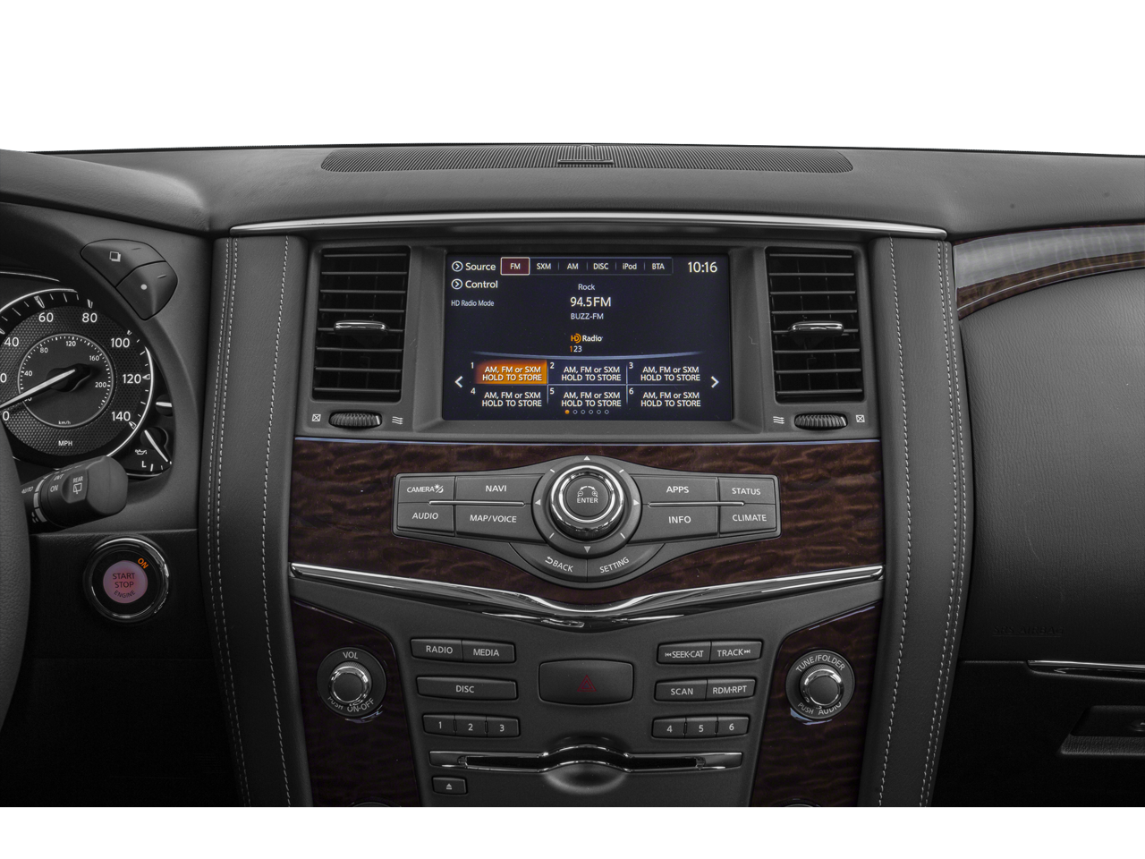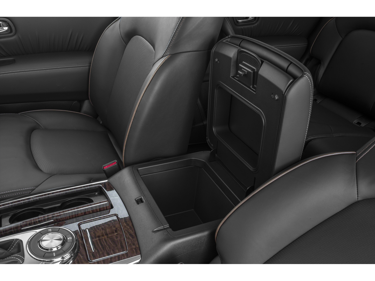 4WD, 13 Speakers, 20 Painted Alloy Wheels, 3rd Row Carpeted Floor Mats - Bench Seat, 3rd row seats: split-bench, 4-Wheel Disc Brakes, ABS brakes, Air Conditioning, Alloy wheels, AM/FM radio: SiriusXM, Anti-whiplash front head restraints, Auto tilt-away steering wheel, Auto-dimming door mirrors, Auto-dimming Rear-View mirror, Auto-leveling suspension, Automatic temperature control, Axle Ratio: 2.94, Brake assist, Bumpers: body-color, CD player, Delay-off headlights, Driver door bin, Driver vanity mirror, Dual front impact airbags, Dual front side impact airbags, DVD-Audio, Electronic Stability Control, Emergency communication system: NissanConnect Services, Exterior Parking Camera Rear, Four wheel independent suspension, Front anti-roll bar, Front Bucket Seats, Front Center Armrest, Front dual zone A/C, Front fog lights, Front reading lights, Fully automatic headlights, Garage door transmitter: HomeLink, Heated door mirrors, Heated Front Bucket Seats w/Power Driver's Memory, Heated front seats, Illuminated entry, Leather Shift Knob, Leather-Appointed Seat Trim, Low tire pressure warning, Memory seat, Navigation System, Occupant sensing airbag, Outside temperature display, Overhead airbag, Overhead console, Panic alarm, Passenger door bin, Passenger vanity mirror, Power door mirrors, Power driver seat, Power Liftgate, Power passenger seat, Power steering, Power windows, Radio data system, Radio: AM/FM/SXM/CD/MP3/HD, Rain sensing wipers, Rear air conditioning, Rear anti-roll bar, Rear reading lights, Rear seat center armrest, Rear window defroster, Rear window wiper, Reclining 3rd row seat, Remote keyless entry, Security system, Speed control, Speed-sensing steering, Speed-Sensitive Wipers, Split folding rear seat, Spoiler, Steering wheel memory, Steering wheel mounted audio controls, Tachometer, Telescoping steering wheel, Tilt steering wheel, Traction control, Trip computer, Turn signal indicator mirrors, Variably intermittent wipers, Voltmeter, 4WD.
