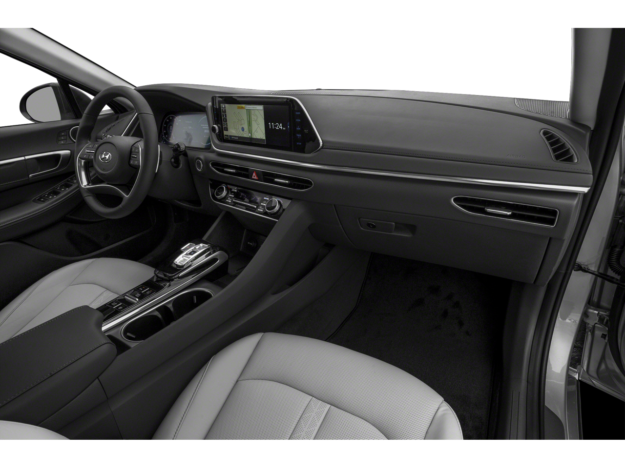 Black Leather, 12 Speakers, 18 x 7.5J Aluminum Alloy Wheels, 4-Wheel Disc Brakes, ABS brakes, Air Conditioning, Alloy wheels, AM/FM radio: SiriusXM, Apple CarPlay & Android Auto, Auto High-beam Headlights, Auto-dimming Rear-View mirror, Automatic temperature control, Brake assist, Bumpers: body-color, Cargo Net, Carpeted Floor Mats, Delay-off headlights, Driver door bin, Driver vanity mirror, Dual front impact airbags, Dual front side impact airbags, Electronic Stability Control, Emergency communication system: Blue Link Connected Car Service (3-year complimentary subscription), Four wheel independent suspension, Front anti-roll bar, Front Bucket Seats, Front Center Armrest, Front dual zone A/C, Front reading lights, Fully automatic headlights, Garage door transmitter: HomeLink, Heads-Up Display, Heated door mirrors, Heated front seats, Heated steering wheel, Heated/Ventilated Front Bucket Seats, Illuminated entry, Knee airbag, Leather Seating Surfaces, Leather steering wheel, Low tire pressure warning, Memory seat, Mud Guards, Navigation System, Occupant sensing airbag, Option Group 01, Outside temperature display, Overhead airbag, Overhead console, Panic alarm, Passenger door bin, Passenger vanity mirror, Power door mirrors, Power driver seat, Power moonroof, Power passenger seat, Power steering, Power windows, Radio data system, Radio: AM/FM/MP3/HD/SiriusXM Display Audio w/Nav, Rain sensing wipers, Rear anti-roll bar, Rear seat center armrest, Rear side impact airbag, Rear window defroster, Remote keyless entry, Security system, Speed control, Speed-sensing steering, Speed-Sensitive Wipers, Split folding rear seat, Steering wheel mounted audio controls, Tachometer, Telescoping steering wheel, Tilt steering wheel, Traction control, Trip computer, Turn signal indicator mirrors, Variably intermittent wipers, Ventilated front seats, Wheel Locks, Black Leather.