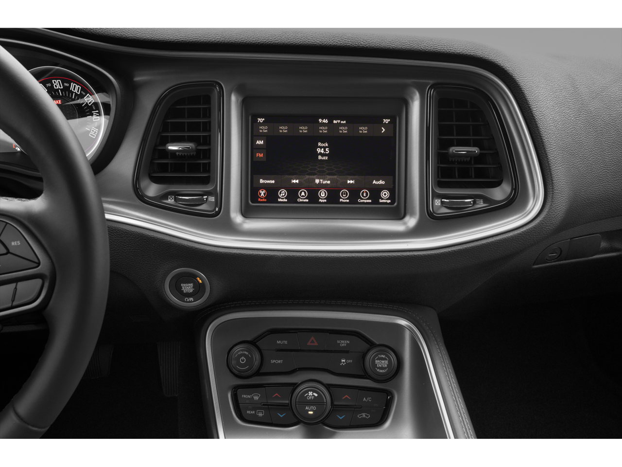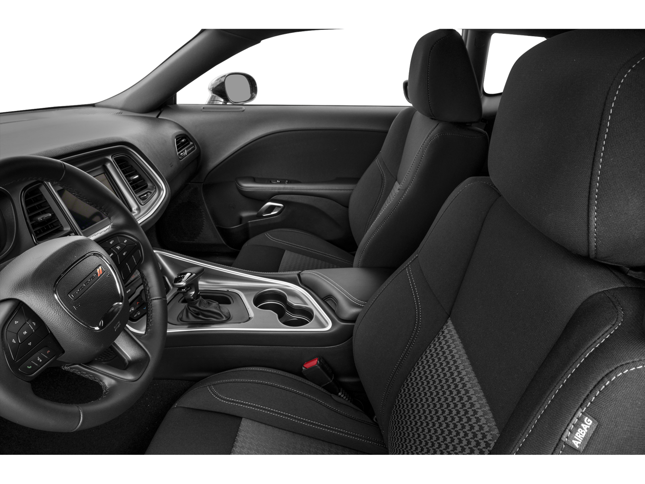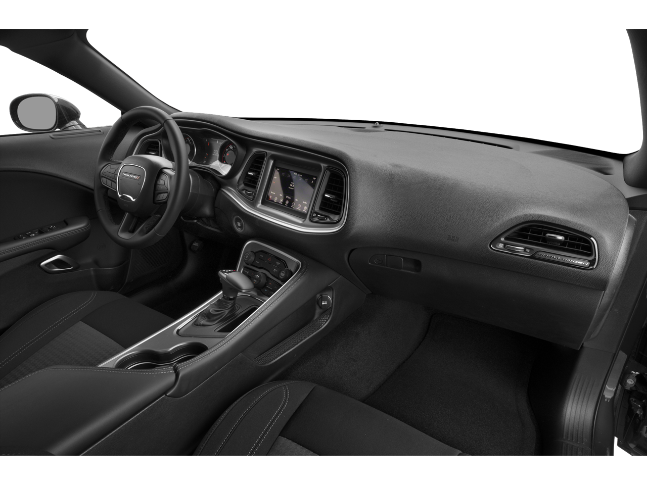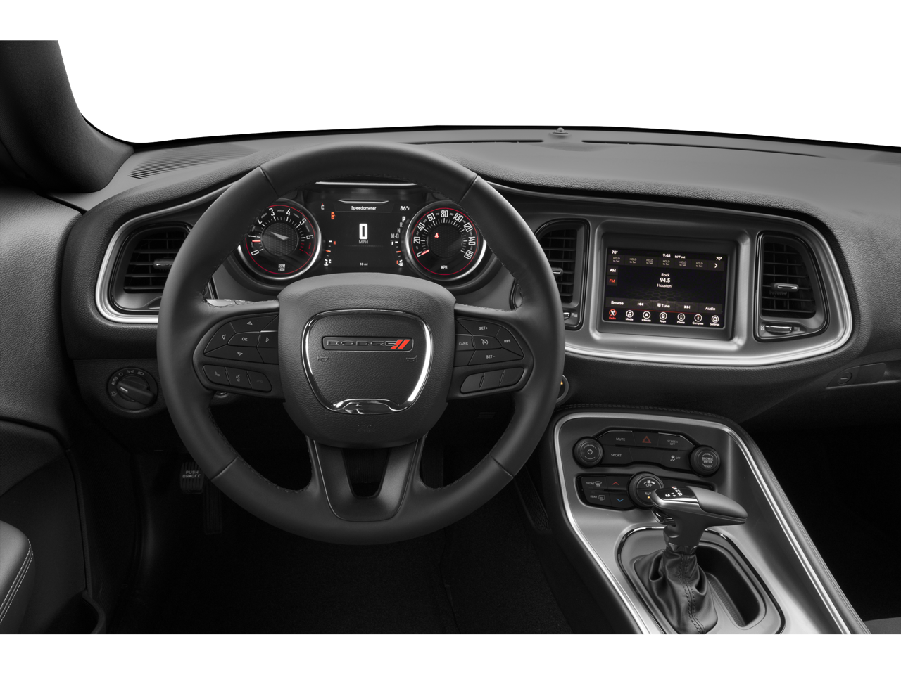 180 Amp Alternator, 276 Watt Amplifier, 4-Wheel Disc Brakes, 6 Speakers, ABS brakes, Air Conditioning, Alloy wheels, AM/FM radio, Anti-Lock Brakes, Anti-whiplash front head restraints, Apple CarPlay, Apple CarPlay/Android Auto, Auto Leather Wrapped Shift Knob, Auto-dimming Rear-View mirror, Automatic temperature control, AutoStick Automatic Transmission, Black Fuel Filler Door, Black Grille w/Bezel, Blacktop Package, Body Color Exterior Mirrors, Brake assist, Bumpers: body-color, Challenger Blacktop Grille Badge, Cold Weather Group, Delay-off headlights, Driver door bin, Driver vanity mirror, Dual front impact airbags, Dual front side impact airbags, Electronic Stability Control, Exterior Mirrors w/Heating Element, Four wheel independent suspension, Front anti-roll bar, Front Bucket Seats, Front Center Armrest, Front dual zone A/C, Front reading lights, Fully automatic headlights, Gloss Black I/P Cluster Trim Rings, Google Android Auto, GPS Antenna Input, Heated door mirrors, Heated Front Seats, Heated Steering Wheel, Houndstooth Cloth Sport Seat, Illuminated entry, Integrated Center Stack Radio, Integrated Voice Command w/Bluetooth®, Leather Performance Steering Wheel, Leather Shift Knob, Low tire pressure warning, Manuf Statement of Origin, Media Hub (2 USB, AUX), Outside temperature display, Overhead airbag, Overhead console, Panic alarm, ParkView Rear Back-Up Camera, Passenger door bin, Passenger vanity mirror, Power door mirrors, Power driver seat, Power steering, Power windows, Quick Order Package 2EA, Radio data system, Radio: Uconnect 4 w/7 Display, Rear anti-roll bar, Rear reading lights, Rear seat center armrest, Rear window defroster, Remote keyless entry, Satin Black Dodge Tail Lamp Badge, Security system, Speed control, Speed-sensing steering, Split folding rear seat, Spoiler, Steering wheel mounted audio controls, Tachometer, Telescoping steering wheel, Tilt steering wheel, Tip Start, Traction control, Trip computer, USB Host Flip, Variably intermittent wipers, Wheels: 18 x 7.5 Aluminum Fine Silver, Wheels: 20 x 8.0 Black Noise Painted.