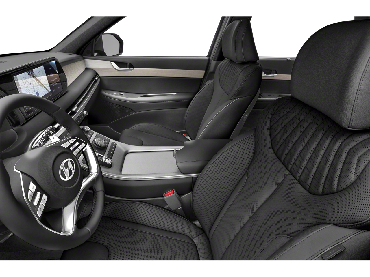 12 Speakers, 3.510 Axle Ratio, 3rd row seats: split-bench, 4-Wheel Disc Brakes, ABS brakes, Air Conditioning, Alloy wheels, AM/FM radio: SiriusXM, Apple CarPlay & Android Auto, Auto High-beam Headlights, Auto-dimming door mirrors, Auto-dimming Rear-View mirror, Auto-leveling suspension, Automatic temperature control, Brake assist, Bumpers: body-color, Cargo Cover/Screen, Cargo Net, Cargo Tray, Carpeted Floor Mats, Compass, Delay-off headlights, Driver door bin, Driver vanity mirror, Dual front impact airbags, Dual front side impact airbags, Electronic Stability Control, Emergency communication system: Blue Link Connected Car Service (3-year complimentary subscription), Exterior Parking Camera Rear, Four wheel independent suspension, Front anti-roll bar, Front Bucket Seats, Front Center Armrest, Front dual zone A/C, Front reading lights, Fully automatic headlights, Garage door transmitter: HomeLink, harman/kardon® Speakers, Heads-Up Display, Heated & Ventilated Front Bucket Seats, Heated door mirrors, Heated front seats, Heated rear seats, Heated steering wheel, Illuminated entry, Knee airbag, Leather Seat Trim, Low tire pressure warning, Memory seat, Navigation System, Occupant sensing airbag, Option Group 01, Outside temperature display, Overhead airbag, Overhead console, Panic alarm, Passenger door bin, Passenger vanity mirror, Power door mirrors, Power driver seat, Power Liftgate, Power moonroof, Power passenger seat, Power steering, Power windows, Radio data system, Radio: AM/FM/MP3 Premium Audio System, Rain sensing wipers, Rear air conditioning, Rear anti-roll bar, Rear audio controls, Rear reading lights, Rear side impact airbag, Rear window defroster, Rear window wiper, Reclining 3rd row seat, Remote keyless entry, Security system, Speed control, Speed-sensing steering, Splash Trim, Split folding rear seat, Spoiler, Steering wheel mounted audio controls, Tachometer, Telescoping steering wheel, Tilt steering wheel, Traction control, Trip computer, Turn signal indicator mirrors, Variably intermittent wipers, Ventilated front seats, Ventilated rear seats, Wheel Locks, Wheels: 20 x 7.5J Alloy.