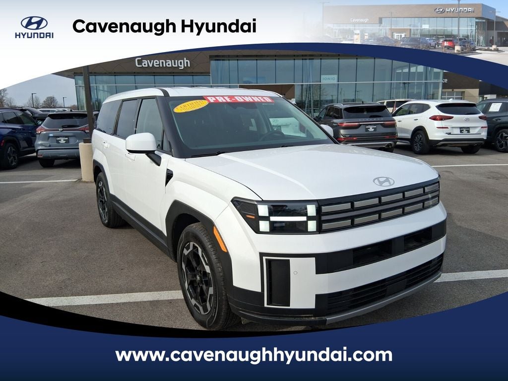 Hyundai Certified Used Vehicles Certified, AWD, Black Cloth, 18 x 7.5J Alloy Wheels, 3rd row seats: bench, 4-Wheel Disc Brakes, 6 Speakers, ABS brakes, Air Conditioning, Alloy wheels, AM/FM radio: SiriusXM, Apple CarPlay & Android Auto, Auto High-beam Headlights, Brake assist, Bumpers: body-color, Cargo Cover, Cargo Net, Carpeted Floor Mats, Delay-off headlights, Driver door bin, Driver vanity mirror, Dual front impact airbags, Dual front side impact airbags, Electronic Stability Control, Emergency communication system, Exterior Parking Camera Rear, First Aid Kit, Four wheel independent suspension, Front anti-roll bar, Front Bucket Seats, Front Center Armrest, Front reading lights, Fully automatic headlights, Heated door mirrors, Illuminated entry, Knee airbag, Leather steering wheel, Low tire pressure warning, Occupant sensing airbag, Option Group 01, Outside temperature display, Overhead airbag, Overhead console, Panic alarm, Passenger door bin, Passenger vanity mirror, Power door mirrors, Power Liftgate, Power steering, Power windows, Radio: AM/FM/HD Display Audio, Rear anti-roll bar, Rear seat center armrest, Rear side impact airbag, Rear window defroster, Rear window wiper, Remote keyless entry, Security system, Speed control, Speed-sensing steering, Split folding rear seat, Spoiler, Steering wheel mounted audio controls, Tachometer, Telescoping steering wheel, Tilt steering wheel, Traction control, Trip computer, Variably intermittent wipers, YES Essentials Stain-Resistant Cloth Seat Trim, AWD, Black Cloth.